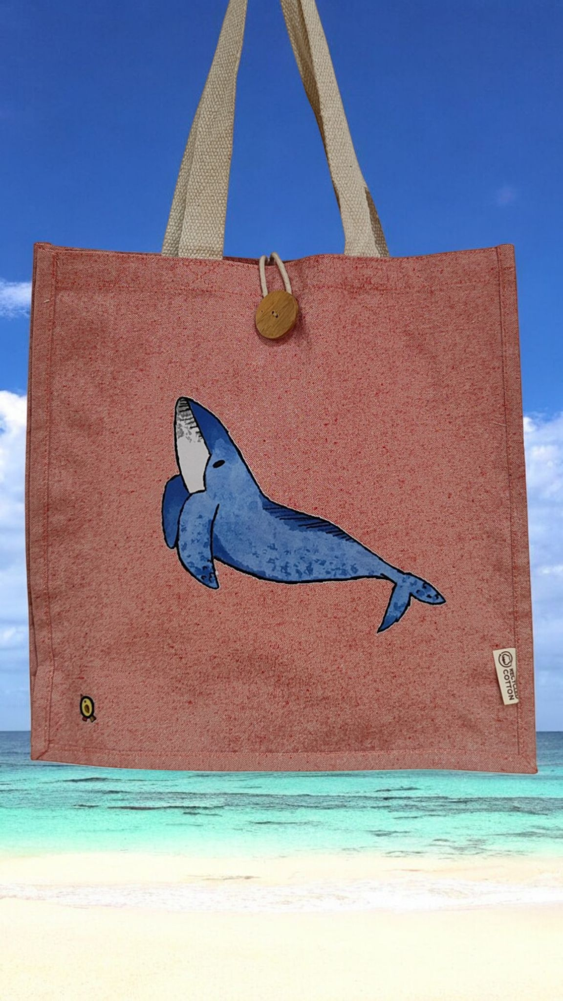 Lleva el océano contigo con esta hermosa bolsa ecológica de tela, decorada con una ilustración de una simpática ballena azul. Perfecta para tus días de playa, compras o uso diario, esta bolsa combina estilo, funcionalidad y compromiso con el medio ambiente.