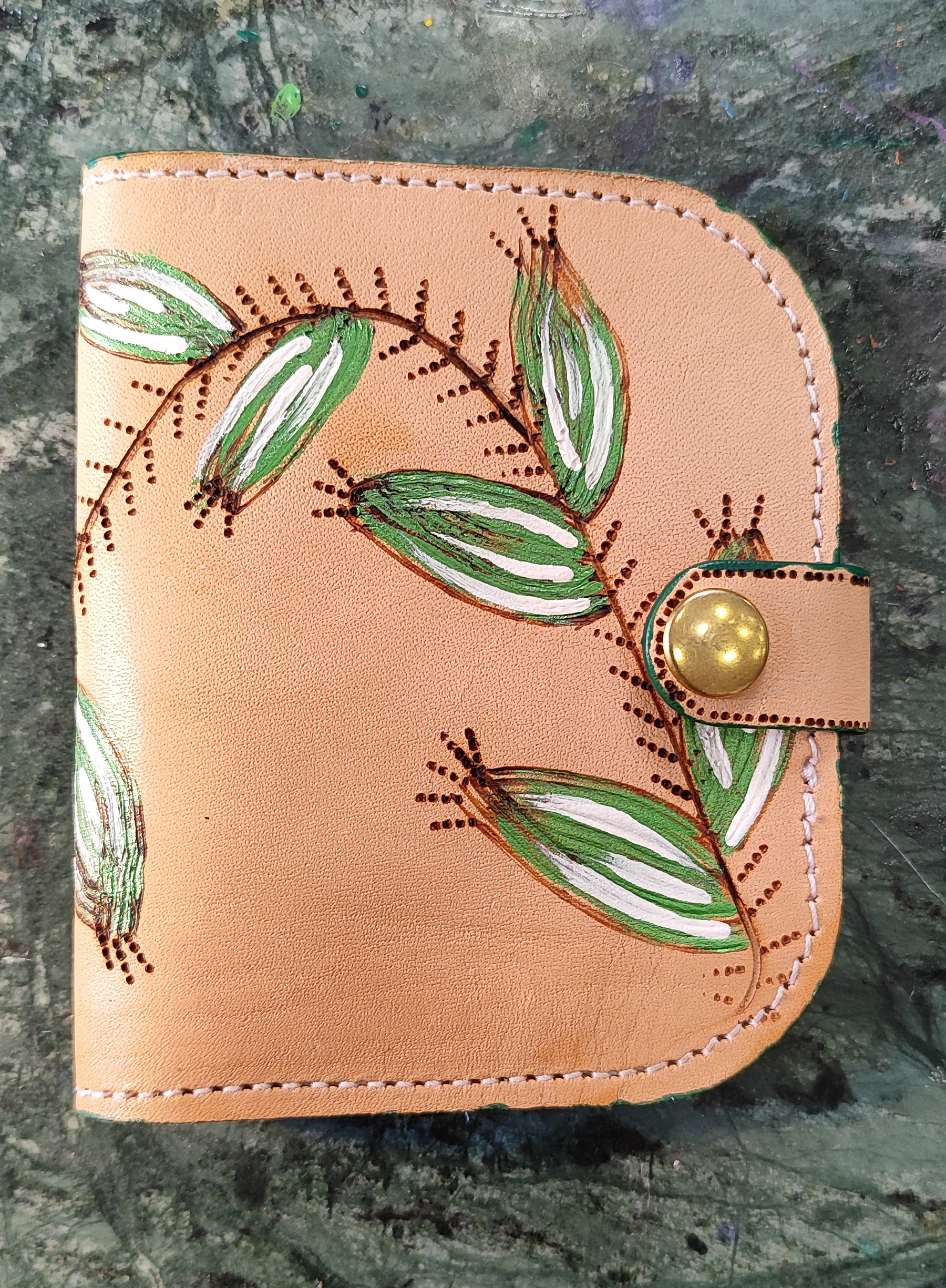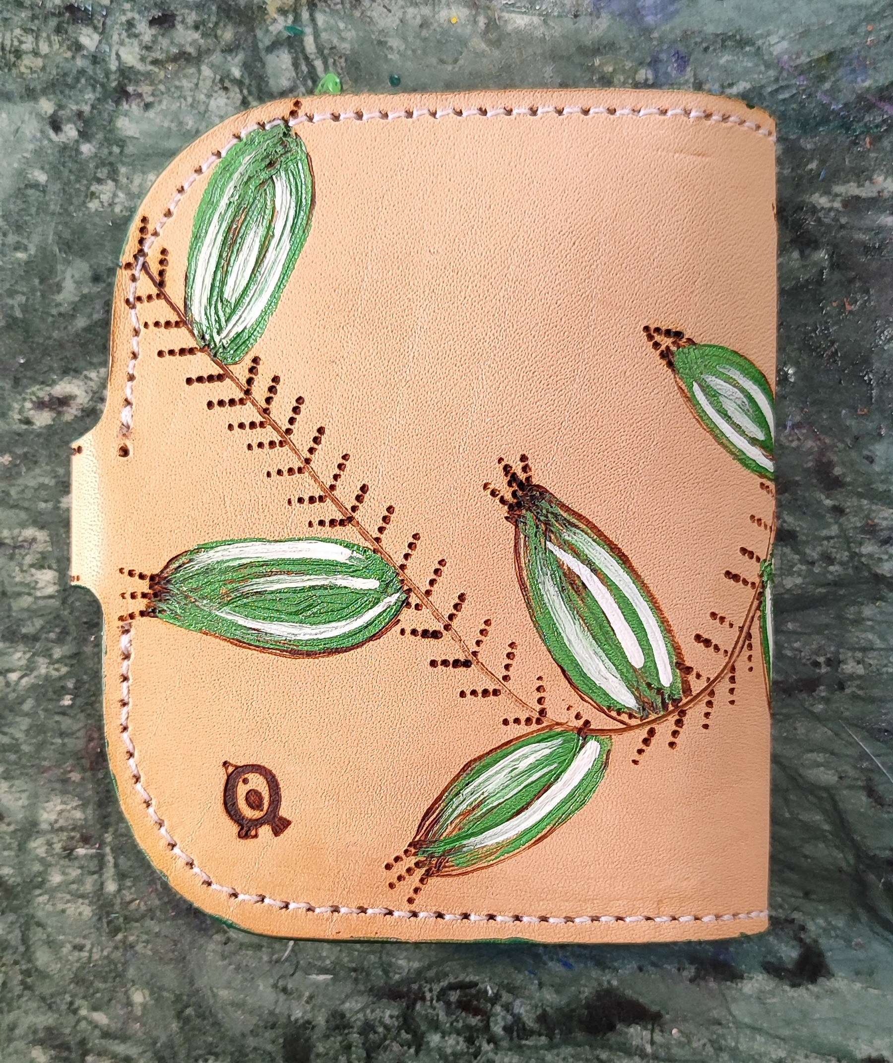 Cartera Botánica está elaborada en cuero natural, diseñada, creada y confeccionada de manera artesanal por Pajarico® en España. Cada pieza es única, ya que el diseño está pirograbado a mano sobre el cuero y posteriormente pintado a mano, respetando la textura y el carácter natural del material.