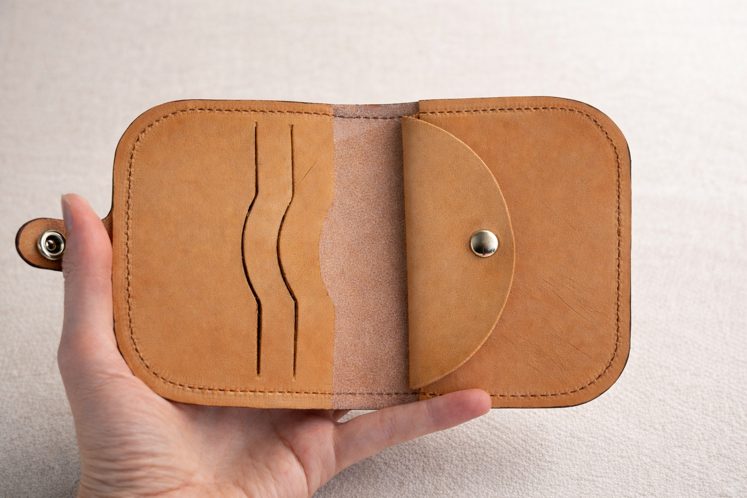 El interior está pensado para el uso diario: ✔ Espacio para tarjetas ✔ Compartimento para billetes ✔ Bolsillo para monedas con cierre de broche