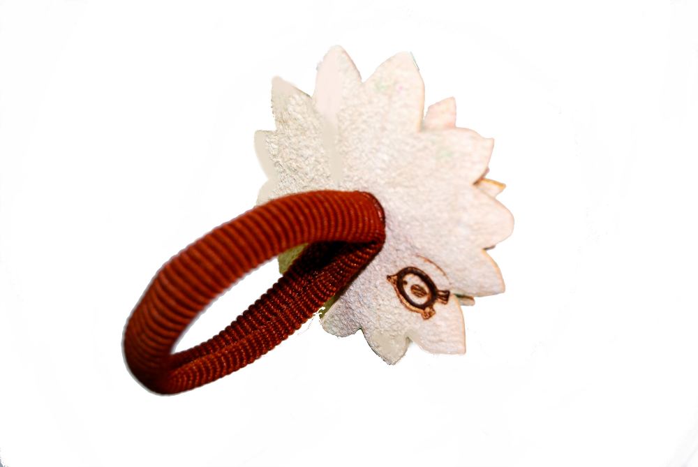 3. Se unen mediante un remache de color a juego a una goma elástica en color.