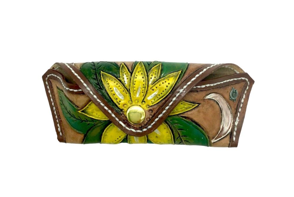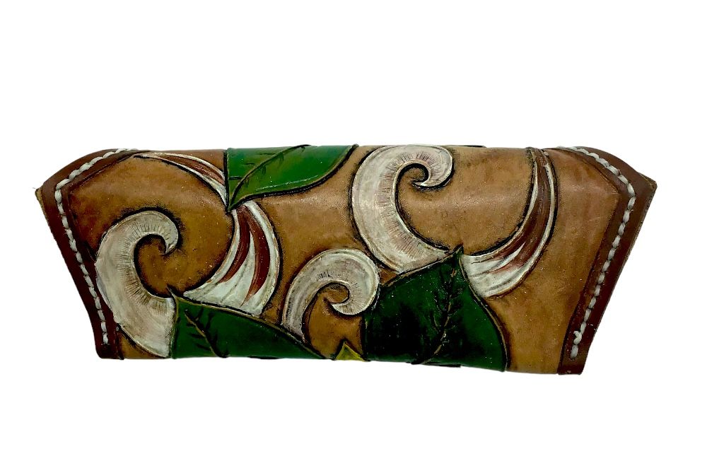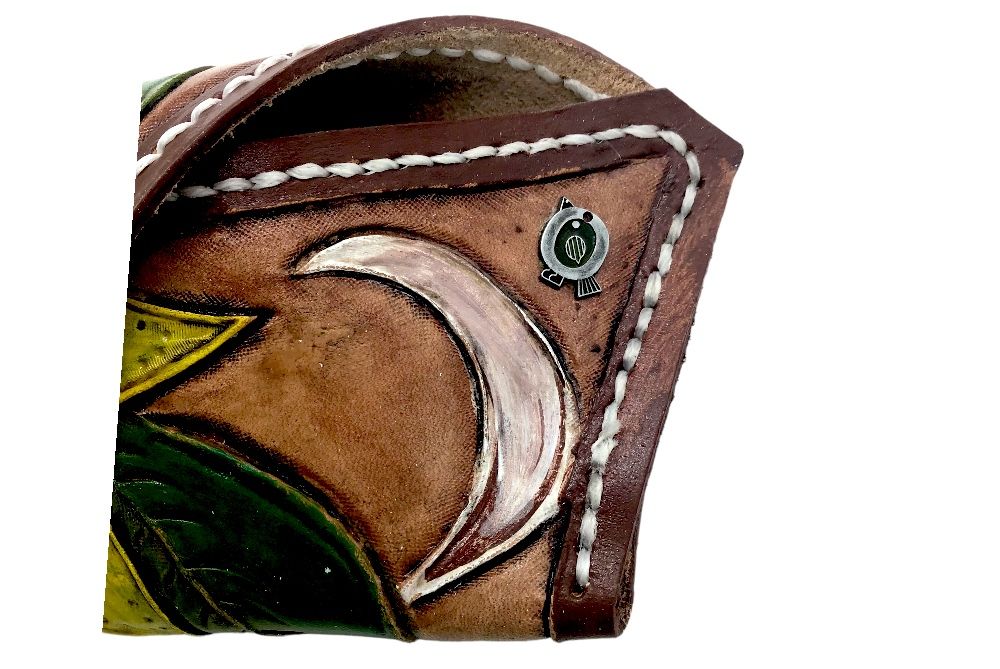 • Pintada a mano en tonos verdes oliva y amarillo, sobre fondo marrón, con patina negra para que resalte mejor
