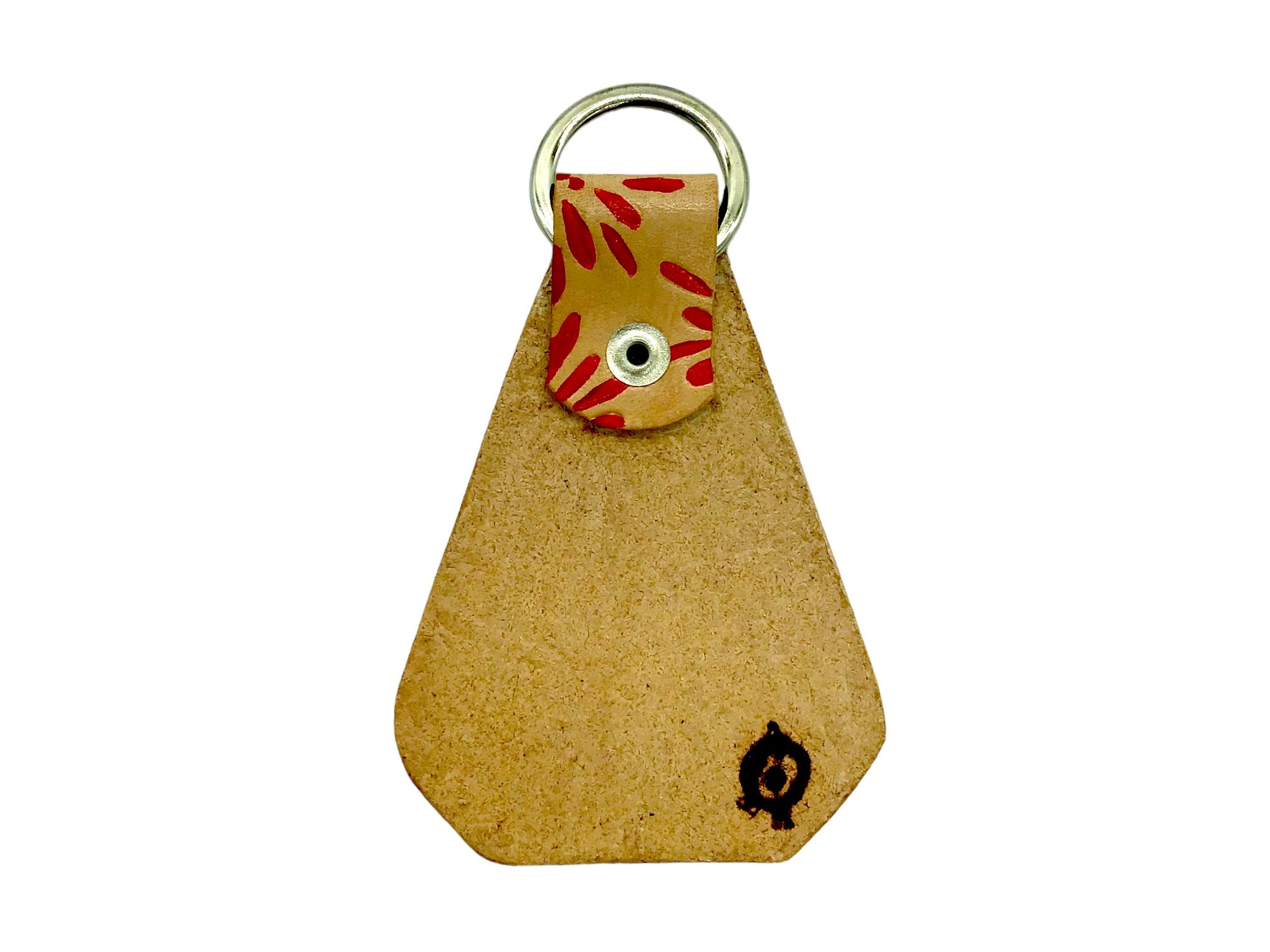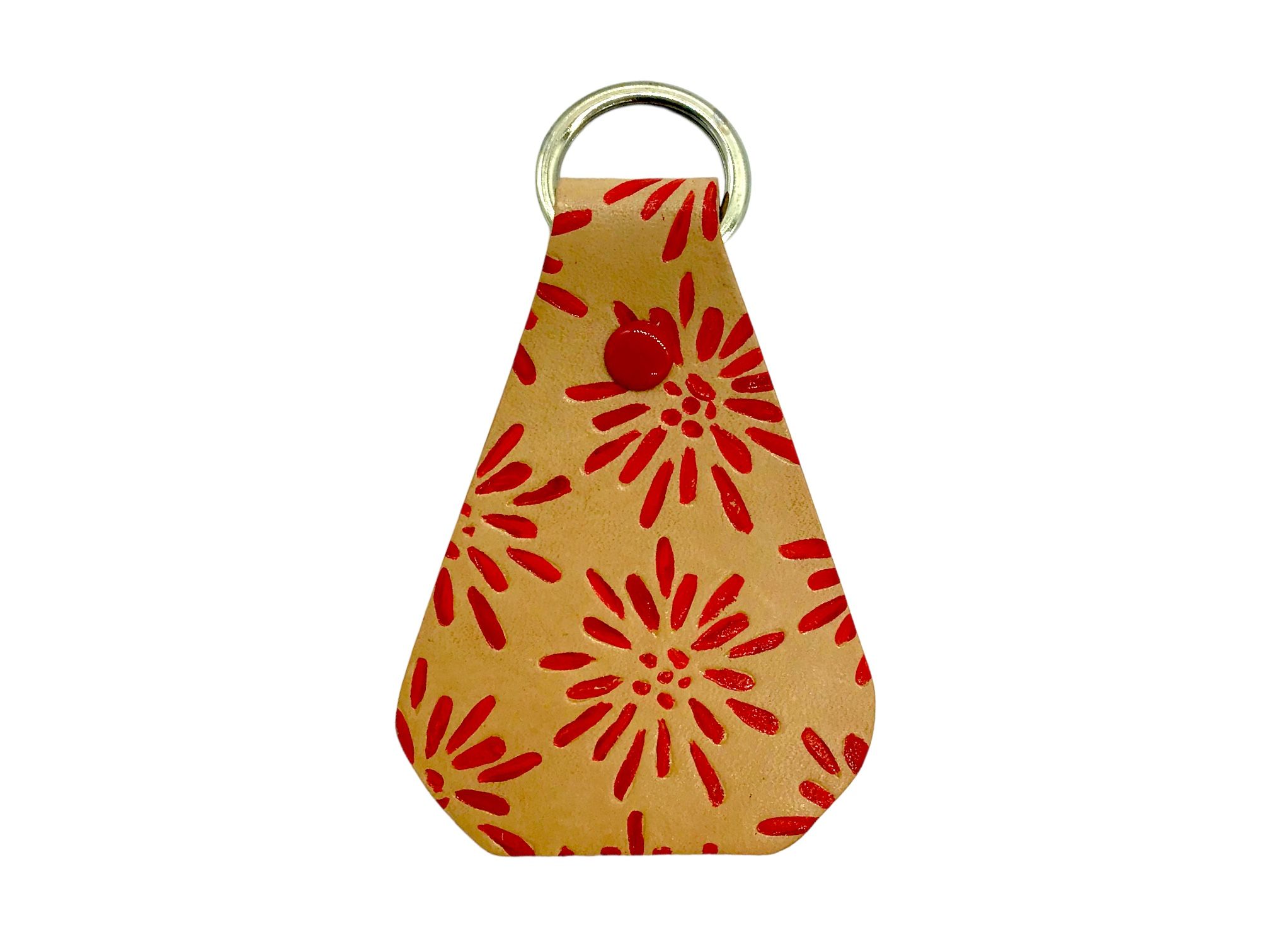 • Llavero de cuero con motivo de petalos rojos en relieve negativo.